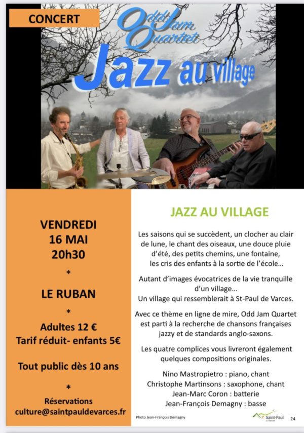 - 16/05 à 20h30 : Odd Jam Quartet. LE RUBAN à Saint-Paul-de-Varces. Réservations : culture@saintpauldevarces.fr